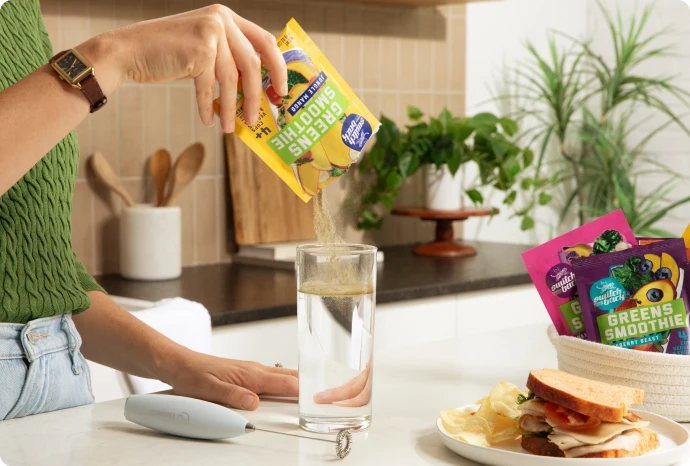 Flavors were tested and approved by kids. You get a veggie-forward profile with a refreshing fruit finish. Customers say it is not too sweet, easy to mix, and great with yogurt or milk.