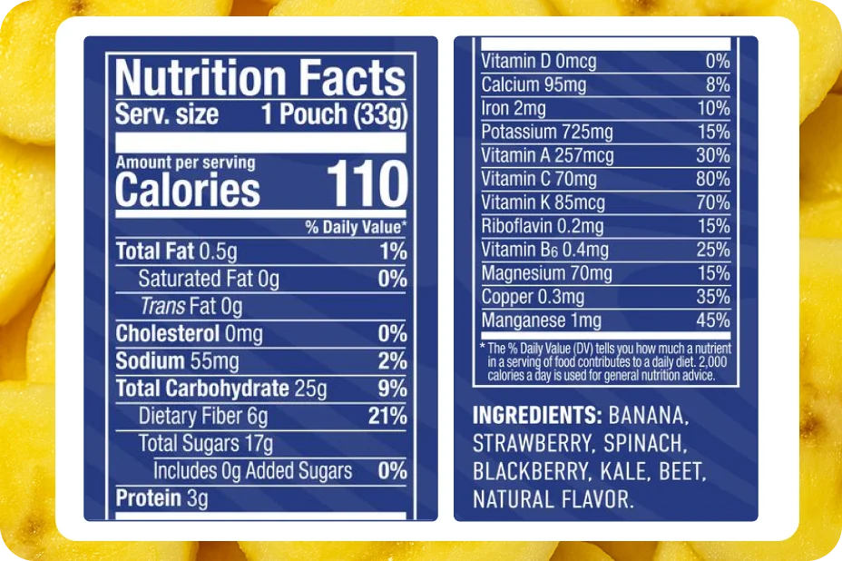 Banana Berry Bite: Banana, Strawberry, Spinach, Blackberry, Kale, Beet, Natural Mixed Berry Flavor