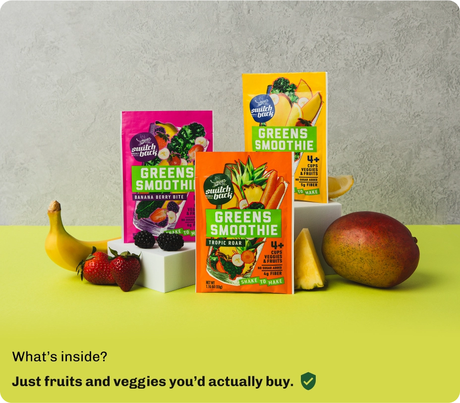 In 2018 I was 290 pounds and living on donuts and energy drinks. A daily fruit and veggie smoothie changed everything. More energy. Better sleep. A routine I could keep. That path became Switchback so you can get the same daily greens in 10 seconds.